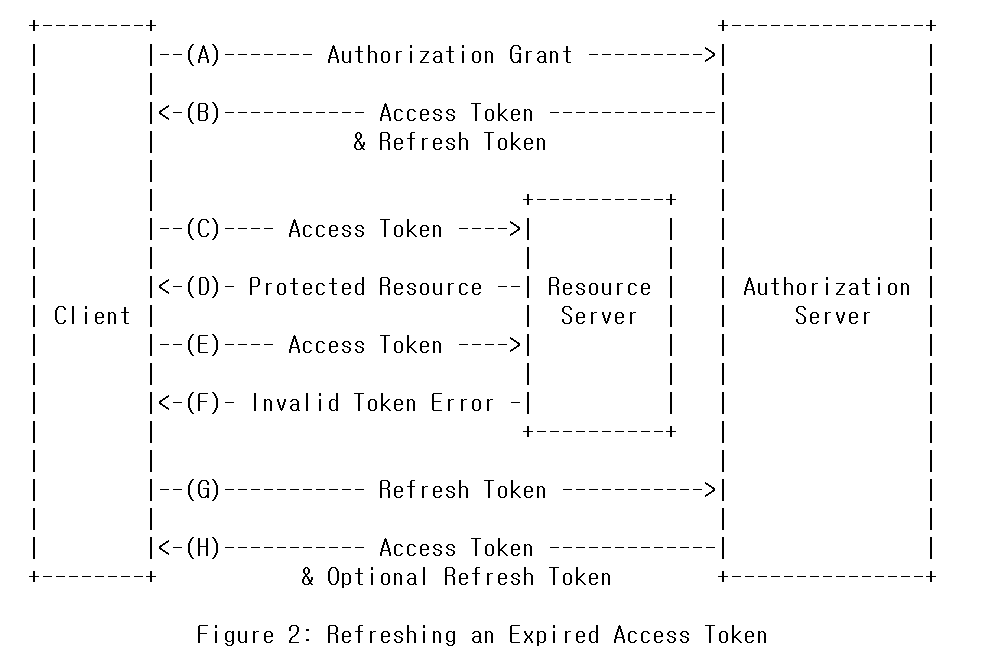 - (G) Client는 Refresh Token을 제시 함으로써 Authorization Server에게 새로운 Access Token을 요청한다.