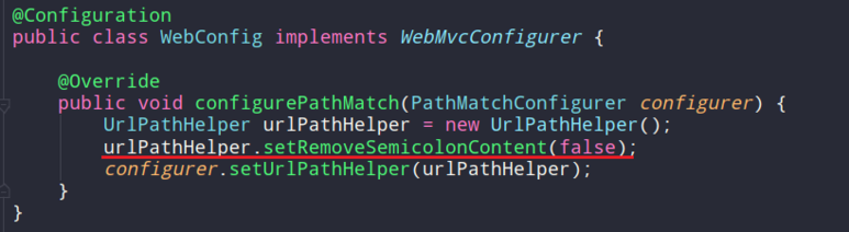 - 스프링에서는 기본으로 urlPath에 세미콜론은 제거하기 때문이 이렇게 따로 추가 설정이 필요하다.