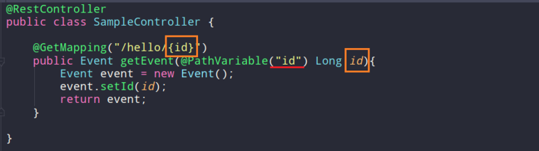 - 만약 /hello/23이라는 요청이 들어오면 id에 23이 매핑될 것이다.