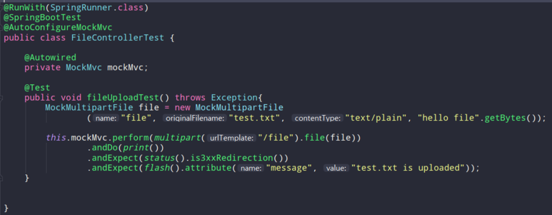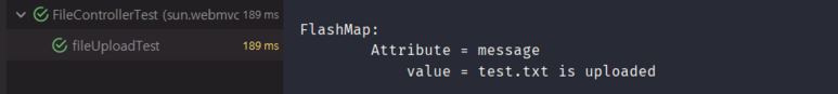 테스트에서 MockMultipartFile로 가상의 파일로 만들어 테스트를 진행할 수 있으며 정상적으로 테스트가 작동하는 것을 확인할 수 있다.
