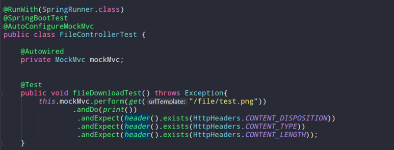 서버를 띄우고 http://localhost:8080/file/test.png에 접속을 하게 되면 정상적으로 파일이 다운로드되는 것을 알 수 있다. 그리고 아래의 테스트 코드를 통해 헤더 값들도 정상적으로 들어가 있는 것을 알 수 있다.