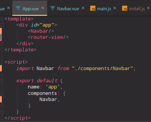 - 우선 라우터 간 이동을 하기 위한 Navbar를 MDB를 커스텀하여 하나 만들고 App.vue의 router-view위에 넣어줬다.