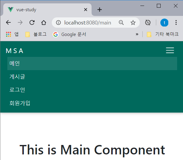 - 이전에 만든 Simple.vue를 Main.vue로 변경하고 routes 설정도 그에 맞게 변경하였다.