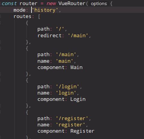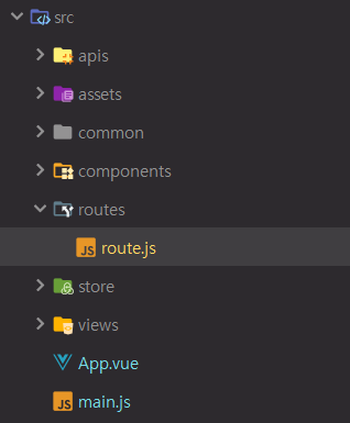 - src이하에 routes폴더를 만들고 route.js를 생성한 후 VueRouter를 등록해준다.
