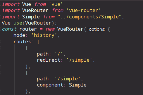 - npm run serve 후 브라우저를 통해 확인해보면 /simple로 redirect 되어 정상적으로 router가 동작하는 것을 알 수 있다.