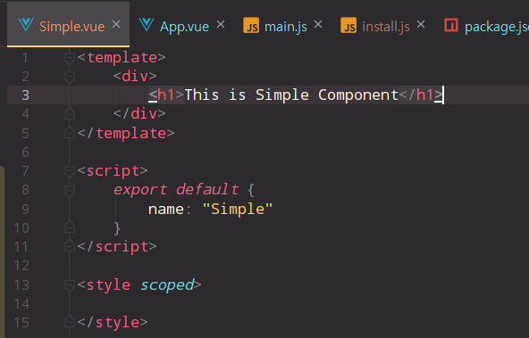 - 기존의 HelloWorld.vue를 삭제하고 components폴더에 Simple.vue를 하나 생성한다. - 그리고 App.vue에 기존 내용을 삭제하고 router-view 태그만 작성해준다.