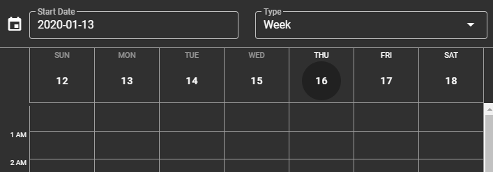 예를 들어 start가 2020-01-13이라면 month type에서는 1월을 보여주고 week type에서는 01-13이 존재하는 week을 보여줄 것이며 day type에서는 01-13을 보여주게 된다.