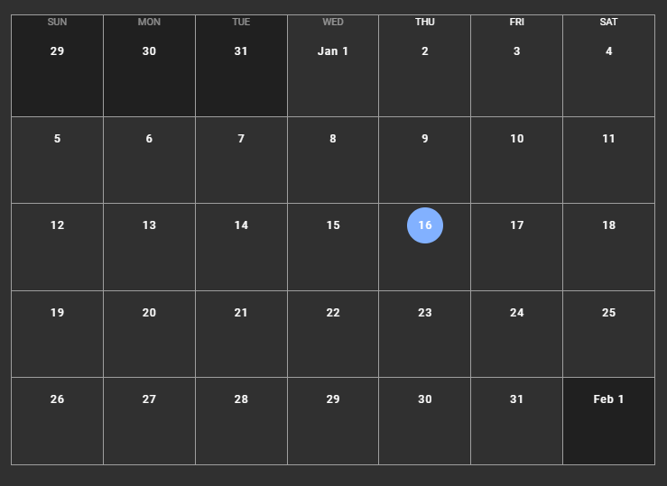 - 현재 테마를 dark 모드로 진행하고 있기 때문에 캘린더 테마도 dark로 하였다.