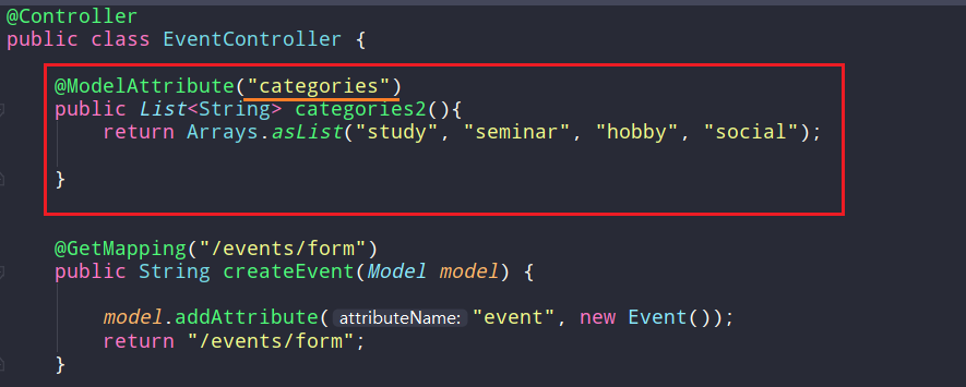 2.@Controller 또는 @ControllerAdvice를 사용한 클래스에서 모델 정보를 초기화할 때 사용한다.